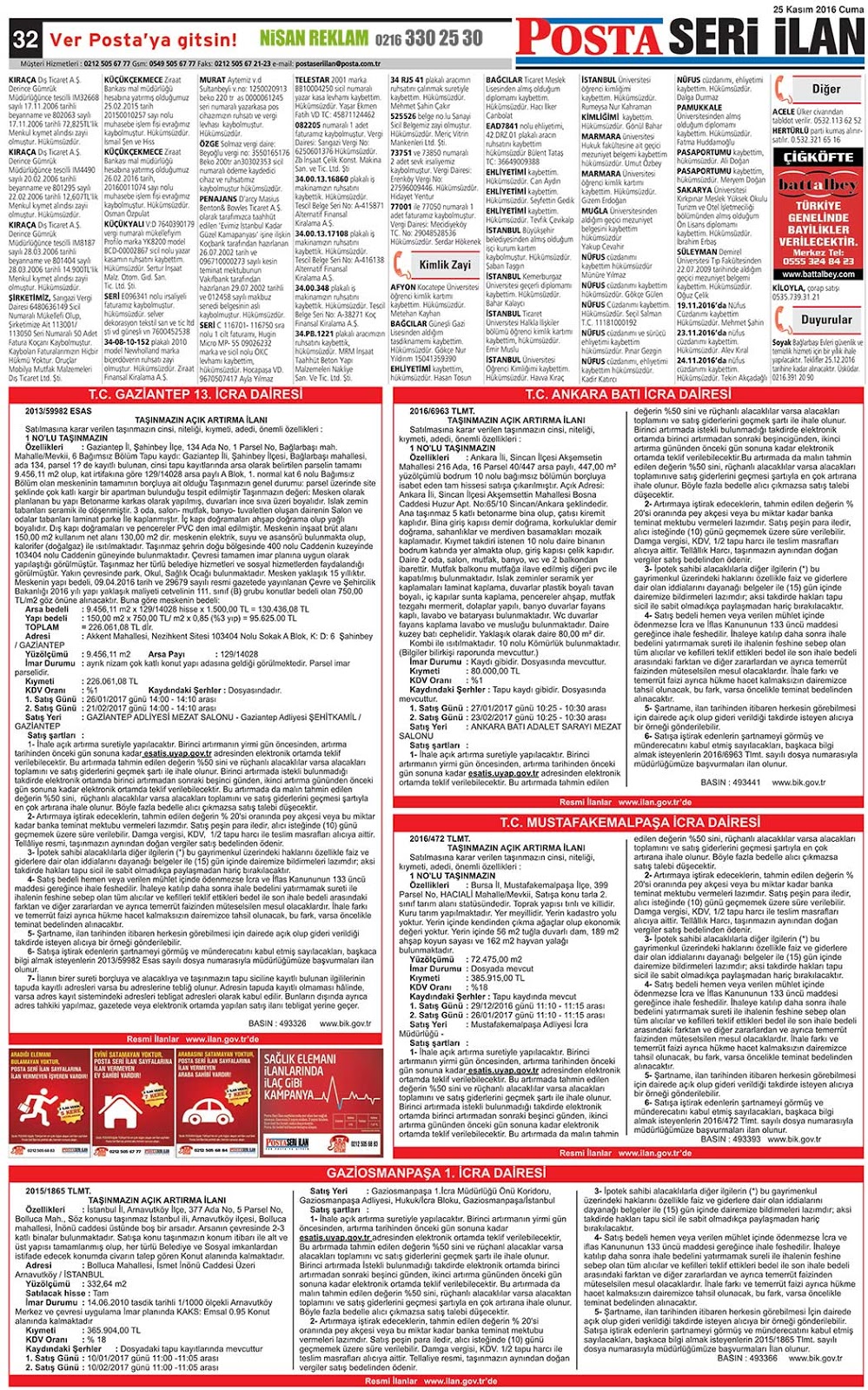17 ocak posta gazetesi istanbul seri ilan sayfalari posta ilan